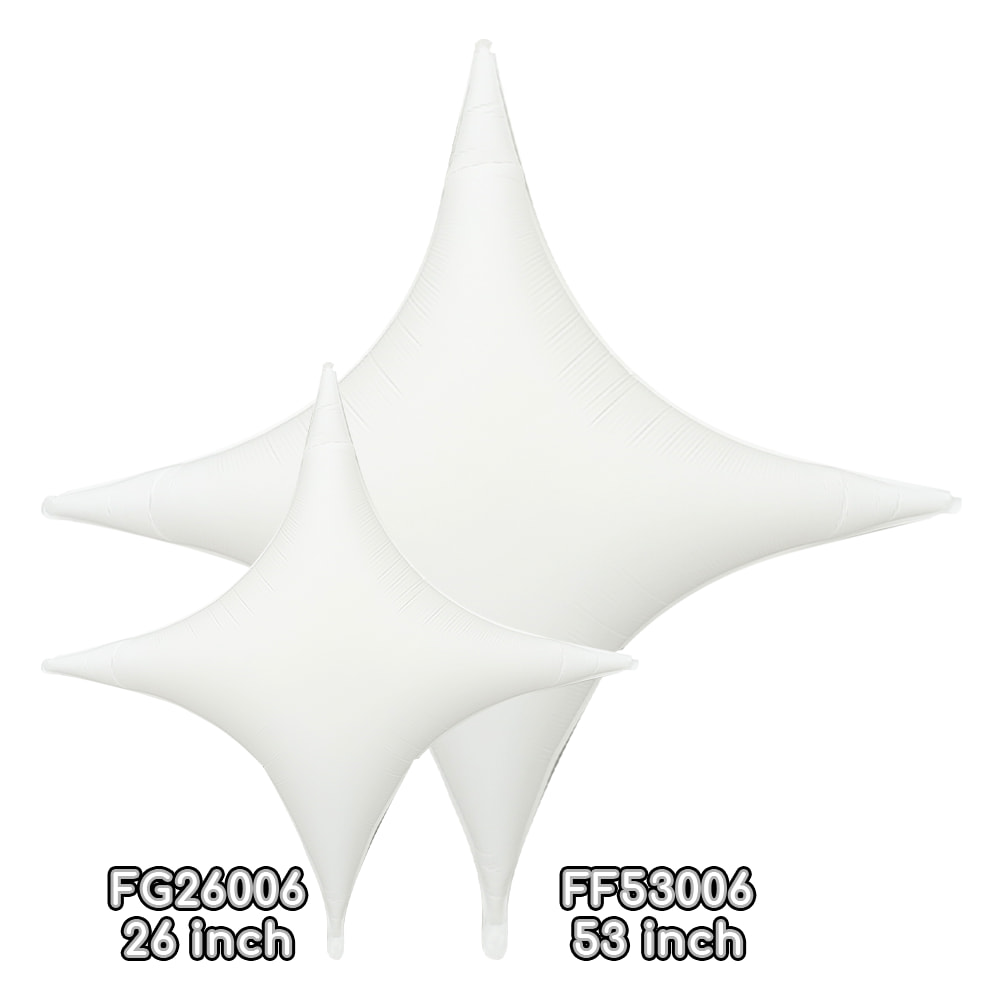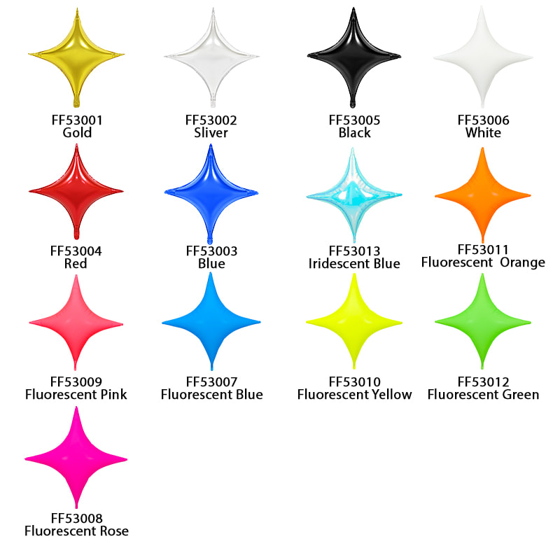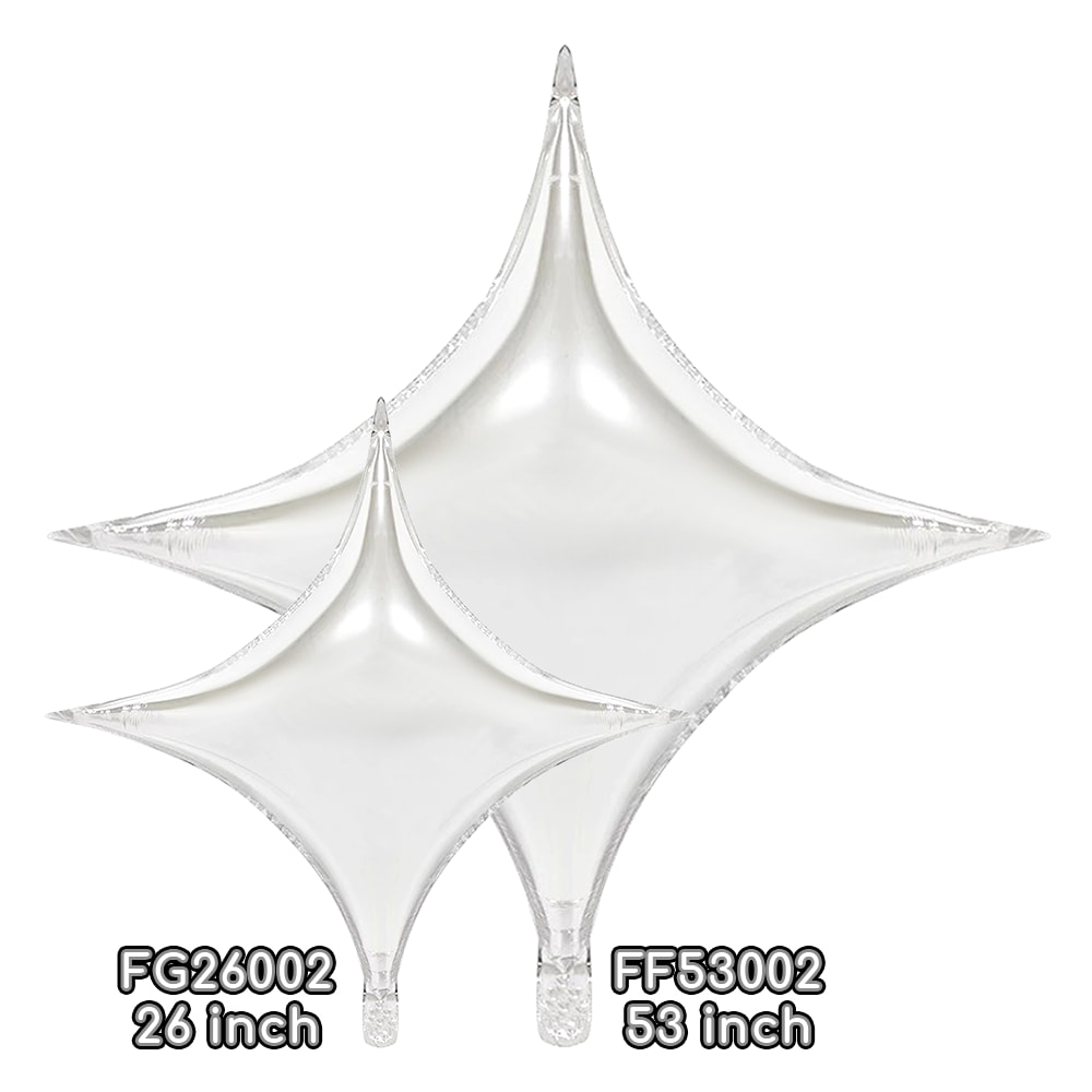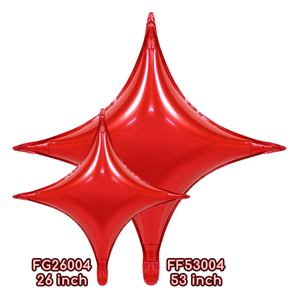 Air/ HeliumOur 53 Inch Starpoints Foil Balloons are made from premium quality Mylar material, carefully tested to ensure durability and long-lasting inflation. Compared with regular sizes, this giant 53-inch star-shaped balloon is perfect for stage setups, weddings, shopping mall displays, festive celebrations, and large-scale events, delivering a stunning visual impact.
