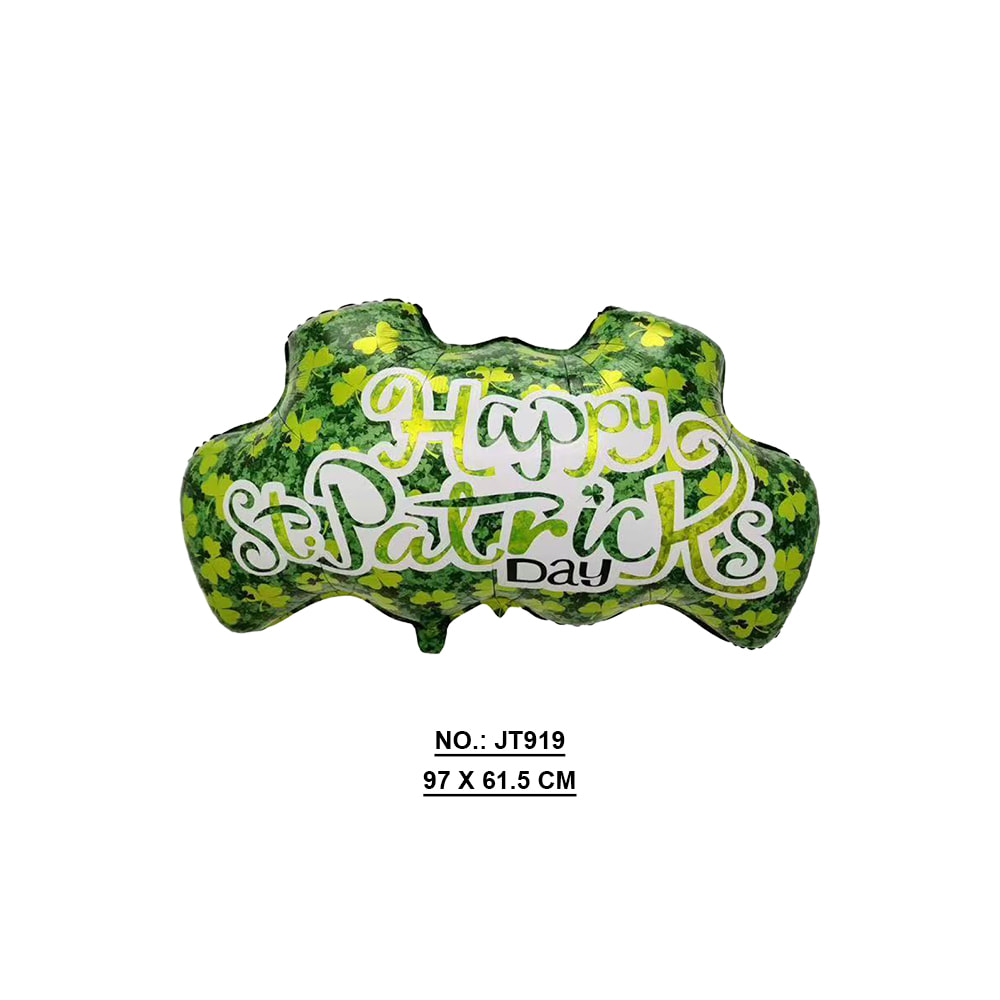JT919 | Foil (Mylar) | Green with shamrock pattern | Air or Helium | St. Patrick’s Day Decoration |